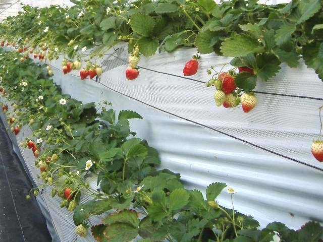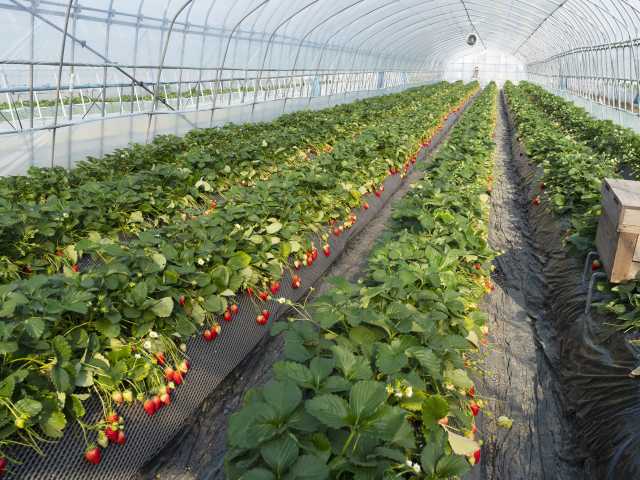 シーズンにはイチゴ狩りが楽しめる。腰を屈めずに摘めるのが特徴