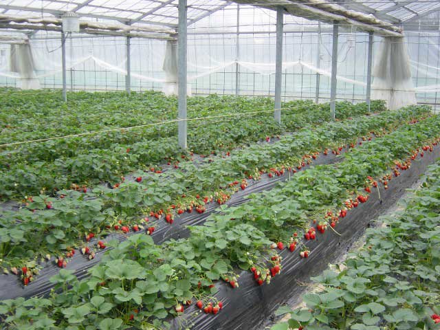 農家が集まり多くのイチゴハウスが並び直売、イチゴ狩りが出来る