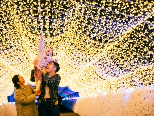 甲子園球場6個分の広さを誇る大型公園「あすたむらんど徳島」は、多数のLEDが園内全体を包み込む、徳島県内最大級のイルミネーションスポット。今年は41万球の電飾が園内を彩る。高さ10mのクリスマスツリーが登場し、幻想的な世界が楽しめる。急流すべり「吉野川めぐり」は、小舟に乗ってイルミネーションめぐりができる大人気アトラクション。さらに、子ども科学館やプラネタリウムでは夜間限定のイベントを開催(詳細はあすたむらんど徳島公式ホームページを参照)。