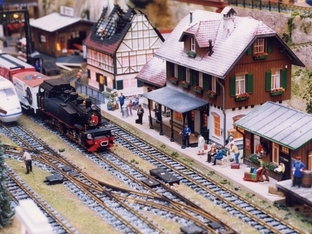 巨大なジオラマの中をクリスマストレインが走り抜ける