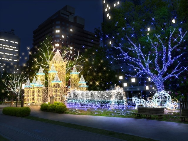 岡山駅前が光の芸術に包まれる
