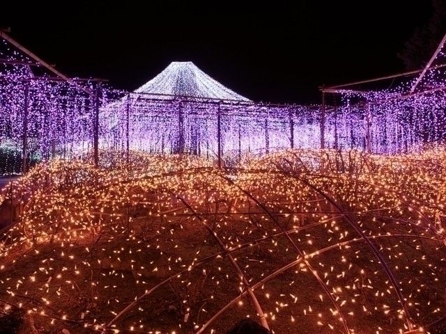 日本最大級のフラワーパーク「とっとり花回廊」を、100万球で彩るイルミネーション。フラワーイルミネーションでは中国地方最大級となる規模を誇り、霧の庭園やヨーロピアンガーデン、フラワードームなどが幻想的な光に包まれる。花回廊のスタッフが自ら手掛けるオリジナルのイルミネーションで、アイスチューリップの展示や全長100mにわたるトンネルなど、花と光のコラボレーションが盛りだくさん。