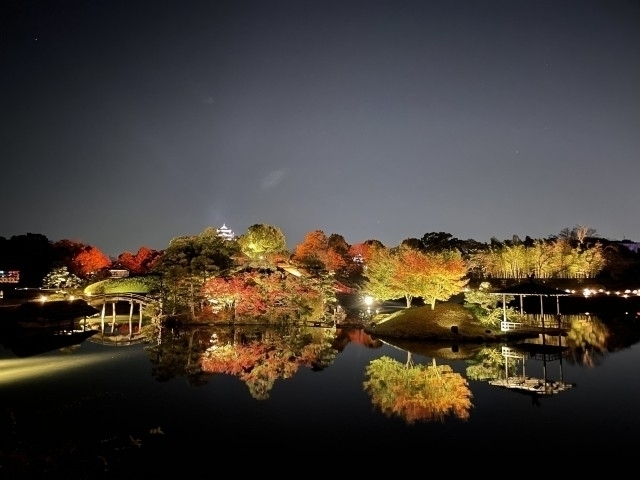 紅葉が最も美しい季節に合わせて、岡山後楽園のもみじ林など紅葉をメインに幻想的にライトアップする夜間特別開園「秋の幻想庭園」。美しい紅葉をライトアップで演出。静けさの中に広がりを見せる庭園を包み込むような温かな灯りが魅せる幻想的な空間を楽しむことができる。