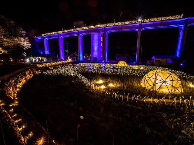 邑南町の農村の中で開催される自然の中のイルミネーションイベント。地上から20mの高さにある「天空の駅」旧JR三江線宇都井駅周辺と、谷あいの集落が田舎の魅力たっぷりに彩られる。今年は、三江線全線開通50周年の節目の年であり、宇都井駅が選奨土木遺産に認定された記念イベントを行う。