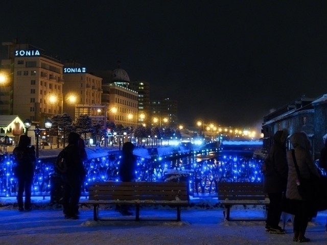 寒い季節をロマンチックに彩るイルミネーション。小樽運河は11月から1月の3か月間、青色の電飾が施される。特におすすめは、日没後のブルーアワーの時間帯、イルミネーションの青と空の蒼が相まって、幻想的な時間を楽しむことができる。期間中は、人気の運河クルーズも青色の電飾をまとい、運河内を周遊する。