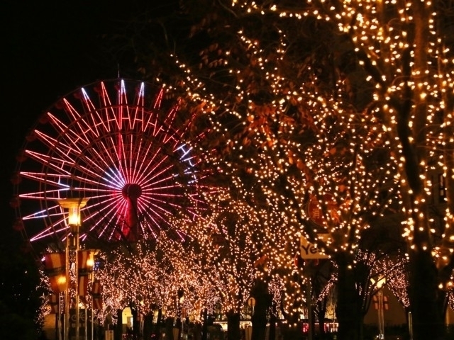 神戸ハーバーランドのメインストリート、神戸ガス燈通りとハーバーロードのけやき並木を約10万球のLEDでライトアップ。毎日、消灯してから再点灯する「ハーバーウィンク」を20:00・21:00・22:00の1日3回実施する(変更の場合あり)。一瞬静まりかえった街並みが、一斉に光を放つ瞬間は感動的だ。ガス燈のやわらかな光と街路樹のイルミネーションが道行く人を優しく照らす。美しい光たちがつくり出すロマンチックな世界を散策してみてはいかが。