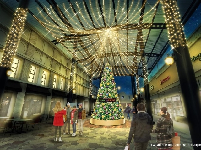 今年のウィンターイルミネーションは、スクウェア・エニックス「ドラゴンクエスト」オリジナル装飾に合わせて開催。期間中、場内各所に「スライム」や「ギガンテス」、「ゴーレム」など人気モンスターが、クリスマスツリーの装飾やパネル、オブジェになって登場し、施設全体をドラクエワールドに演出する。夜にはシャンパンゴールドのイルミネーションに照らされ、さらに賑やかで煌びやかな光の世界に。あたたかな光に包まれ非日常を感じるアウトレットで、「ドラゴンクエスト」の装飾と共に、ホリデーシーズンのショッピングを楽しむことができる。