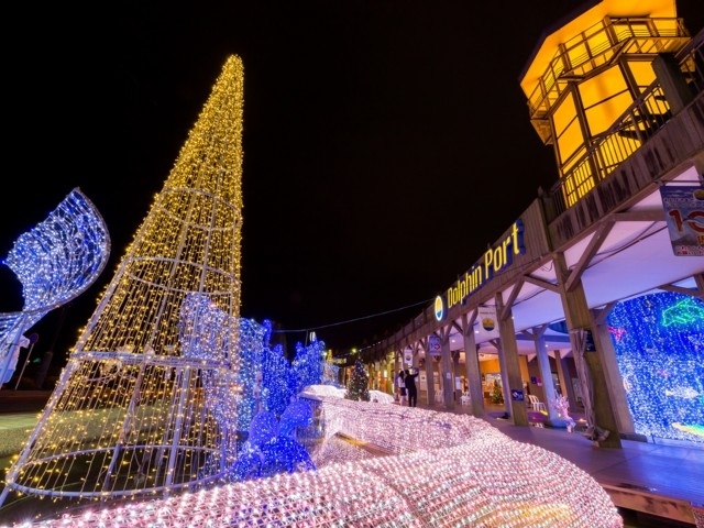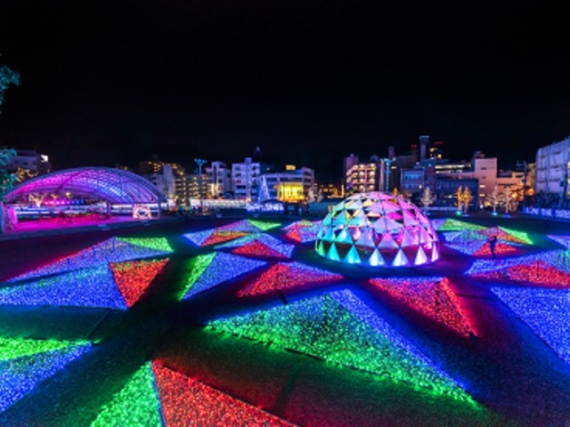 約20万個の彩り豊かなイルミネーションが、クリスマスを演出。噴水広場をメインに展望台に向かう通路には「光のトンネル」がお出迎え。花火も打ち上げられ幻想的な世界を楽しめる。花火打ち上げ日予定日は12月20日・21日・24日・25日。※花火は雨天及び荒天時は中止。