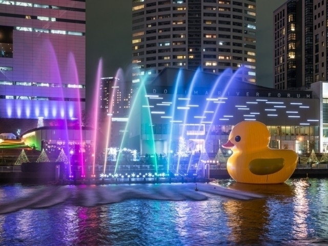 海遊館イルミネーションは今年で21回目の開催となる冬の恒例イベント。海遊館壁面のジンベエザメのオブジェや広場の生きもののオブジェなどをライトアップし、柔らかく暖かな光で海遊館一帯を彩る。生きもののオブジェとの写真撮影がおすすめ。