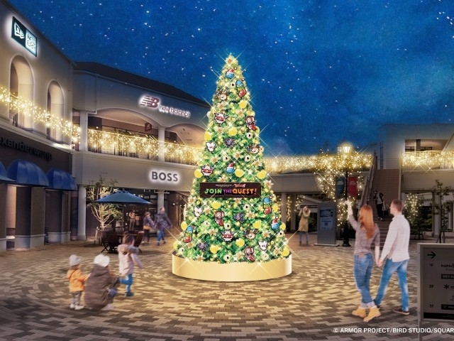今年のウィンターイルミネーションは、スクウェア・エニックス「ドラゴンクエスト」オリジナル装飾に合わせて開催。期間中、場内各所に「スライム」や「ギガンテス」、「ゴーレム」など人気モンスターが、クリスマスツリーの装飾やパネル、オブジェになって登場し、施設全体をドラクエワールドに演出する。夜にはシャンパンゴールドのイルミネーションに照らされ、さらに賑やかで煌びやかな光の世界に。あたたかな光に包まれ非日常を感じるアウトレットで、「ドラゴンクエスト」の装飾と共に、ホリデーシーズンのショッピングを楽しむことができる。