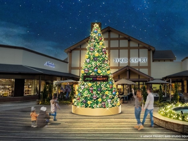 今年のウィンターイルミネーションは、スクウェア・エニックス「ドラゴンクエスト」オリジナル装飾に合わせて開催。期間中、場内各所に「スライム」や「ギガンテス」、「ゴーレム」など人気モンスターが、クリスマスツリーの装飾やパネル、オブジェになって登場し、施設全体をドラクエワールドに演出する。夜にはシャンパンゴールドのイルミネーションに照らされ、さらに賑やかで煌びやかな光の世界に。あたたかな光に包まれ非日常を感じるアウトレットで、「ドラゴンクエスト」の装飾と共に、ホリデーシーズンのショッピングを楽しむことができる。