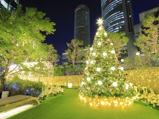毎年好評で、昨年は約19万人が来場した「大名古屋クリスマスイルミネーション」。今年は恒例となった人気の「天空のクリスマスツリー」をはじめ、新たなフォトスポットも登場。地上約30mの屋上庭園で、高層ビル群の夜景とともに、特別なイルミネーションを楽しむことができる。