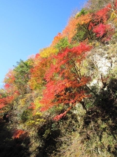 真っ白な岩肌と真っ赤な紅葉のコントラスト
