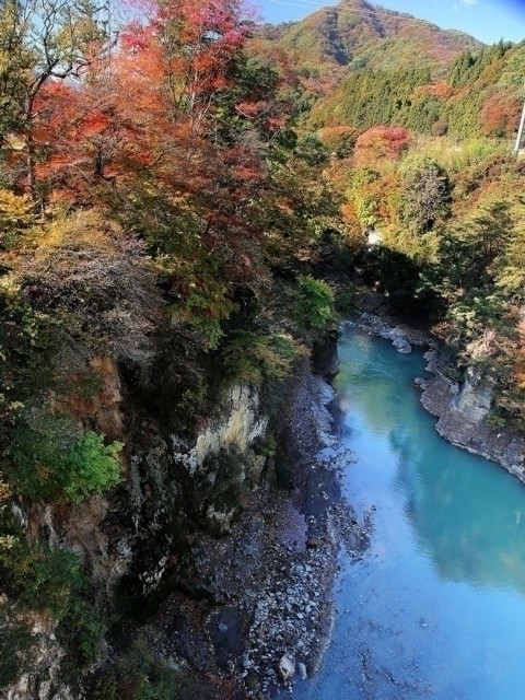 約2.5kmにわたって続く渓谷は、国指定名勝で関東有数の名峡。カエデ、クヌギなどに彩られ、景勝地「八丁暗がり」や奇岩、滝などを楽しめる。ミツバツツジの咲く春と、紅葉の美しい秋は散策に最高のシーズン。また、周辺ではJR吾妻線の付替えとなった線路を利用した自転車型トロッコの体験ができる。