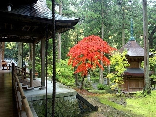 養老元(717)年にまで歴史を遡る真言宗の名刹。境内には、様々な重要文化財が点在していて歴史が感じられる。ここを訪れた松尾芭蕉は「石山の石より白し秋の風」と詠んだ。境内はイロハモミジ、ヤマモミジなどで赤く染められ、優美な眺めとなる。