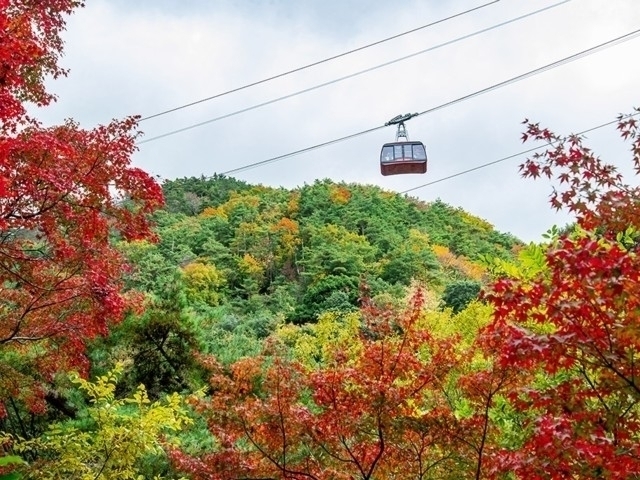 宝塚から須磨まで東西に広がる六甲山系。秋の六甲山は一年のうちで一番魅力的な季節。紅葉を堪能するなら六甲ガーデンテラスのすぐ近くの六甲山頂駅と、日本三古泉のひとつ、名湯の有馬温泉を結ぶ「六甲有馬ロープウェー」が便利だ。足元まで広がる大きな窓からの眺めは最高に美しい。