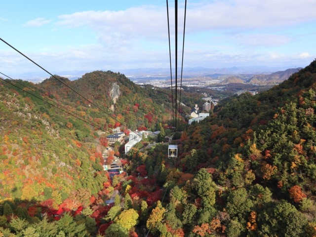 宝塚から須磨まで東西に広がる六甲山系。秋の六甲山は一年のうちで一番魅力的な季節。紅葉を堪能するなら六甲ガーデンテラスのすぐ近くの六甲山頂駅と、日本三古泉のひとつ、名湯の有馬温泉を結ぶ「六甲有馬ロープウェー」が便利だ。足元まで広がる大きな窓からの眺めは最高に美しい。