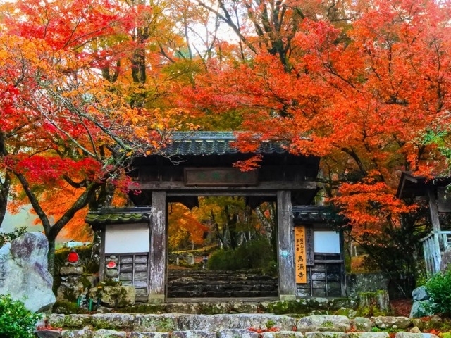 康保3(966)年性空上人の開基で「西の比叡山」とも呼ばれる天台宗の名刹。標高371mの書写山山上へ上ると荘厳な伽藍が次々と現れる。秋には境内にうっそうと茂る木々に混じりヤマモミジやイチョウが色づき、参道を散策しながらその色合いを楽しめる。