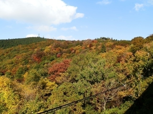 ロープウェイから見下ろす色鮮やかな紅葉