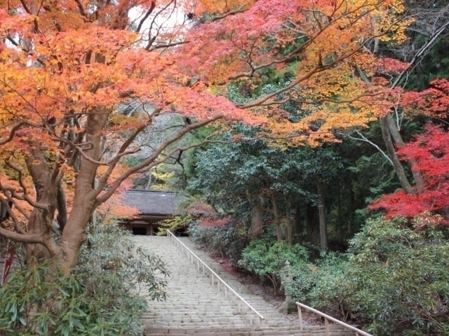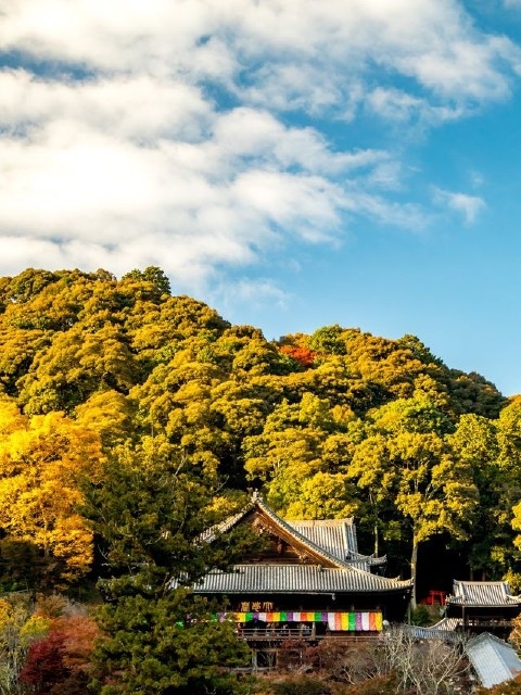 西国三十三所第8番札所。朱鳥元(686)年、道明上人が天武天皇の病気治癒を祈願して建立した。徳川家光の寄進による本堂をはじめ、国宝や重要文化財が多い。本堂の外舞台から眺める五重塔と紅葉の競演が見事だ。また境内が広いので、日当たりの違いにより、長い期間紅葉が楽しめるのもうれしい。