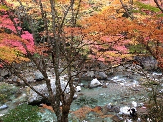 「新日本百景」の一つに選ばれた渓谷を染める紅葉