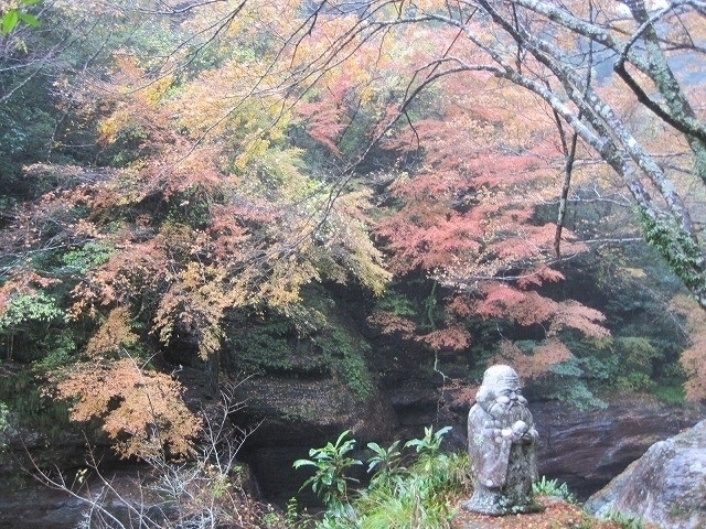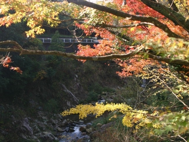 鈍川温泉沿いから奥へと続く渓谷。一帯は県立自然公園に指定されており、「えひめ自然百選」に選ばれている。山々から流れ出る清流にはアマゴなどが多く生息している。渓谷沿いに遊歩道や休憩所などがあり、散策しながら赤や黄色に染まった渓谷美を満喫できる。