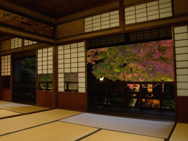 推古天皇2(594)年の創建と伝えられる天台宗の古刹。イロハモミジやイチョウが色づく紅葉の名所で、境内の歴史ある建築物との見事な調和を見せる。参道には苔むした味わい深い石段が続き、そこにモミジが舞い落ち、朱色のジュウタンができる。その情緒あふれる景色は、まるで一幅の絵画のようだ。