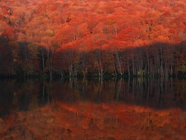 青森県有数の紅葉の名所で燃えるような光景を堪能