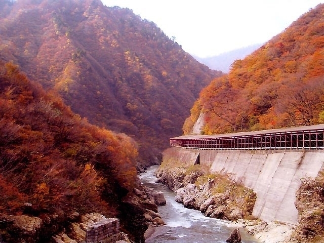 最上川の下流に位置する最上峡は、紅葉だけではなく、天然杉の巨木が点在していることでも有名。ドライブで車窓から眺める最上峡もすばらしいが、やはりはずせないのが舟下りだ。紅葉と水面の美しいコントラストを愛でながら、船頭さんの舟唄や絶妙なガイドが楽しめる。