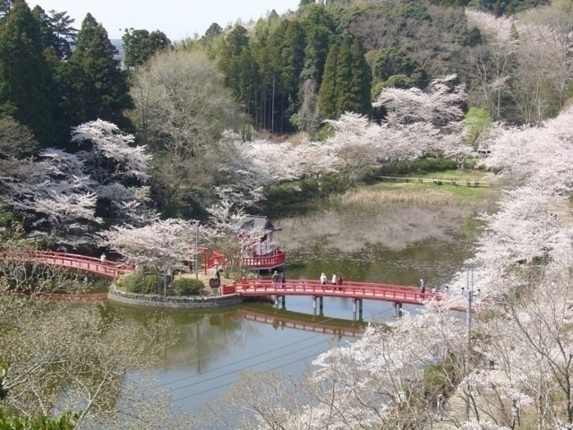 東金駅近くにある湖で、徳川家康の東金御殿の庭池として整備された人造池。周囲にはおよそ300本の桜が植えられ、湖面に映り込む桜が非常に美しい。例年、3月下旬から4月上旬にはライトアップされ「東金桜まつり」が開催される。(ライトアップ・イベントは未定)