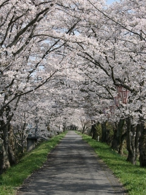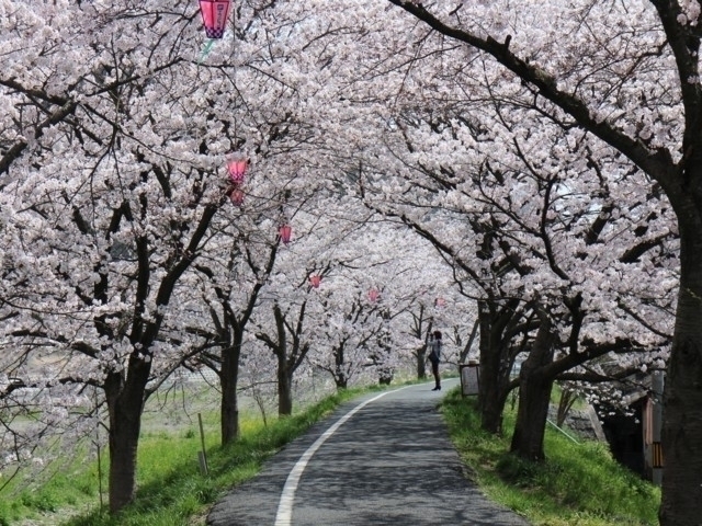 国道373号と千代川との間の土手約1.3kmにわたって、桜並木が続く。1969(昭和44)年に町民の手で植樹されたソメイヨシノで、多くの人の目を楽しませる。例年の見頃は4月上旬からで、満開時は壮観だ。