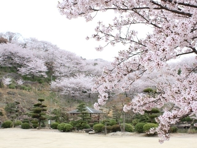 入門ゲートの先には約250本のシダレザクラの並木道があり、園内各所でヨシノザクラ、シダレザクラ、ヤエザクラが楽しめる。また、園内にはレストランや売店のほかに大きな広場が3ヶ所あり、子ども連れの家族も思い切り遊ぶことができる。(開園状況は変更になる場合あり、最新情報は公式ホームページを参照)