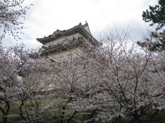 1960(昭和35)年に復興された天守閣がそびえる公園。天守閣やお堀を取り囲むように約300本の桜が彩りを添える。「さくら名所100選」にも選定された桜風景を見に多くの人が訪れる。また、公園内には子どもも楽しめるNINJA館や、甲冑などの着付け体験ができる施設がある。