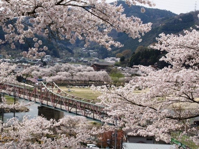 普段は静かな本郷が桜の咲く頃、多くの人でにぎわう。幹周3m、高さ13mで大きく枝を広げたシダレザクラは、樹齢300年ともいわれる見事な桜で、地元では武将・後藤又兵衛の伝説にちなみ「又兵衛桜」とも呼ばれている。