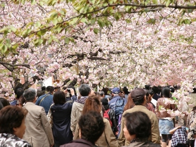 広大な境内を桜が埋め尽くす