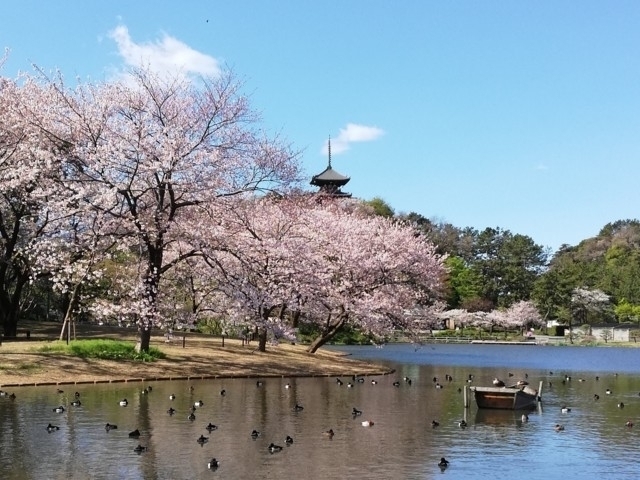面積29万7000平方メートルの起伏に富んだ、豊かな緑に包まれている公園。3つの池を木々が囲み、春になればソメイヨシノが悠々と花を咲かせ、水辺を華麗に彩っている。そのすばらしさは「さくら名所100選」にも選ばれているほどだ。2月のカンザクラをはじめ、ウコンザクラやヨコハマヒザクラなどの珍しい品種まで多数の桜が楽しめる。