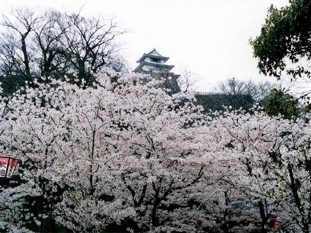 丸亀城のある亀山公園は緑にあふれ、休日にはのんびり散策する家族連れが多い。毎年春にはソメイヨシノを中心に約650本の桜が開花し、たとえようもない美しさ。例年、開花の時期には「丸亀城桜まつり」や夜桜見物のために「桜の海」と称したライトアップが開催されている。