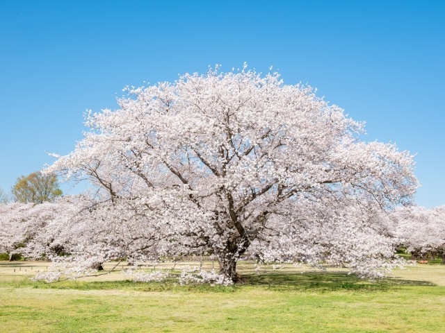 東京ドームの39倍という広さがなんといっても魅力!みんなの原っぱの北側にある「桜の園」では青空の下、ゆったりとお花見ができる。園内の約1500本、約30品種の桜はどれも見事。中でも緑色の花をつける珍しいウコンやギョイコウの見頃は4月中旬となる。3月下旬から5月下旬にかけて、桜をはじめ、菜の花やチューリップ、シャーレーポピーなどが楽しめる「フラワーフェスティバル」を開催予定。期間中は春限定グルメが登場。園内にはバーベキュー施設やレンタサイクル、親子で楽しめるイベントも多く、1日たっぷり遊べる。