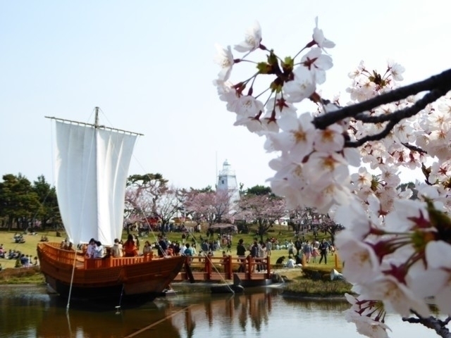 日本海に沈む夕陽が美しく、「日本の都市公園100選」に選定されている公園。園内には、日本最古級の木造六角灯台や方角石、往時活躍した千石船(1/2で再現)などがある。ソメイヨシノなど約400本の桜が咲き誇る桜の名所でもある。
