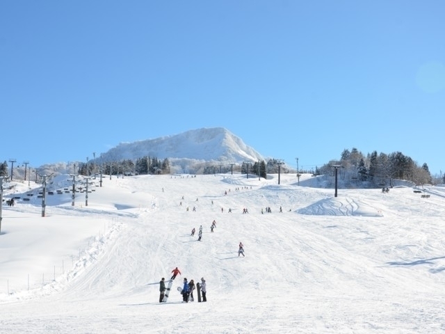 豊富な積雪に恵まれたゲレンデはリフトを乗り継ぐと、山頂から4kmのロングランも可能。雪質も良く、天気が良ければ日本海を眺めながらの滑走が楽しめる。スマイルキッズパークではソリ遊びもできる。