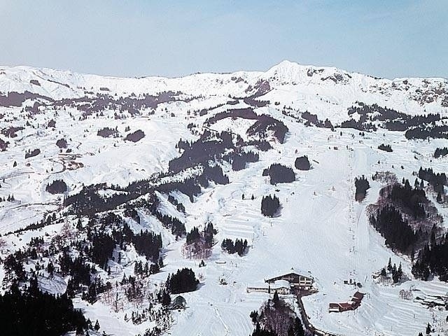 麓に建つ、赤い屋根の大きな宿泊施設、ホテルグリーンプラザがイメージシンボル。豊富なパウダースノーを堪能できる急斜面と、ファミリー層が楽しめる中・緩斜面を併せ持ったスキー場。