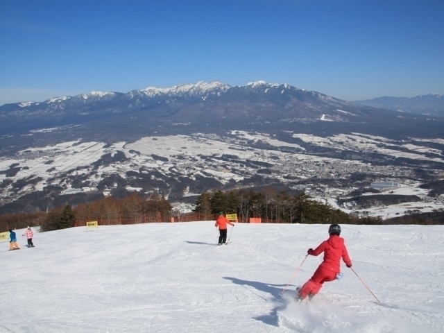 ゲレンデトップからは駒ヶ根市内、南アルプス連峰の大パノラマを一望にできる、眺望の良いスキー場。滑りごたえのある中級コースと穏やかな初級コースの2本というシンプルな構成。