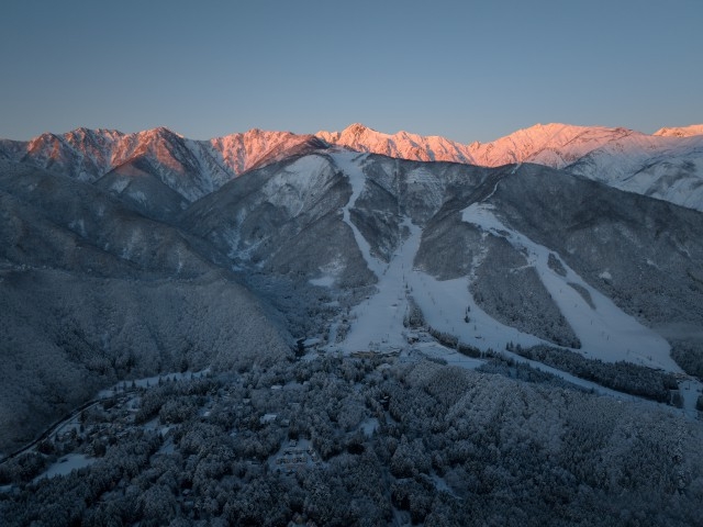 3000m級を誇る北アルプスの山々に囲まれた本格的国際山岳リゾートスキー場。最長滑走距離8000m、高低差1071mの壮大なゲレンデからは、雄大なパノラマを望む。アフターは山麓の白馬八方温泉で癒やされよう。