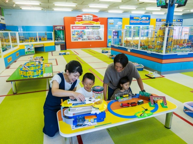 トミカやプラレール、シルバニアファミリーなど人気のものから、積み木やブロックなど親しみのあるものまで、感性や個性を育むおもちゃが多彩な「おもちゃのお部屋」が全10館揃う。