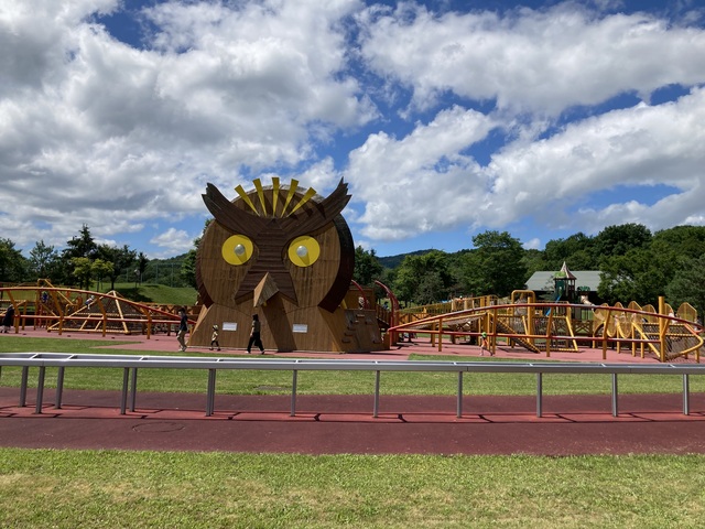 車の乗り入れはできないが、草原のようなサイトでゆったりとキャンプを楽しめる。公園内には屋内遊戯施設のわくわくエッグや体験学習館などもある。