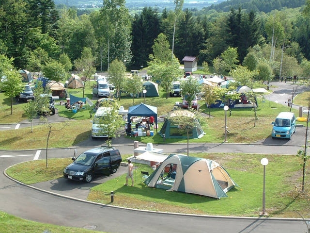 オートサイトは野外炉付きで1区画が広く、AC電源、水道、流し台付きのサイトもある。ケビンにも水道、野外卓が設置。歩いて行ける距離にエルム高原温泉(露天風呂付き)があり便利だ。