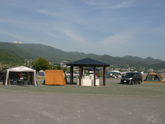 - フリーサイト10組収用、ソロサイト5組収用、サイトは芝生、砂地。キャンピングカーサイト12区画、サイトはアスファルト