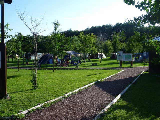 - テント専用50区画。テント専用28張収容、サイトは芝生・土