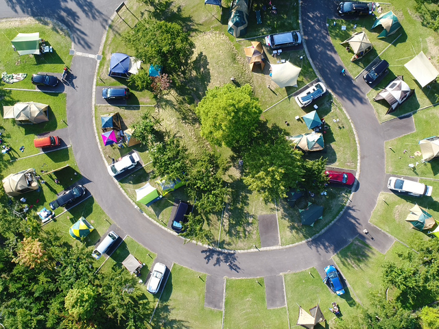 - 管理棟、サニタリー棟、炊事棟、水洗トイレ、温水シャワー、ランドリー、レストラン、売店、自動販売機、子供の遊具、多目的広場ほか