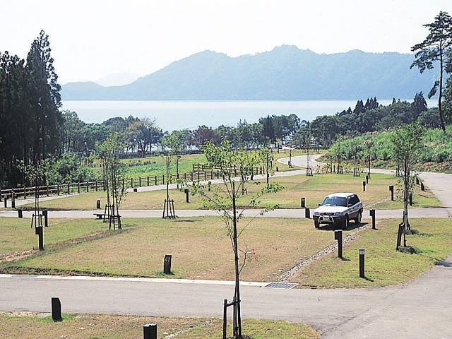 整備された開放的なサイトは、湖畔寄りの「くにますサイト」、山側の「いぬわしサイト」に分かれている。オートサイトより安い縄文風バンガローもある。田沢湖周辺の観光拠点におすすめだ。